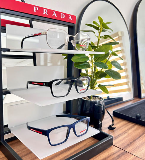 Sus armazones se distinguen por líneas dinámicas, detalles minimalistas y el icónico toque rojo que refleja energía y movimiento. Perfectos para quienes buscan lentes versátiles, modernos y con la elegancia inconfundible de Prada.